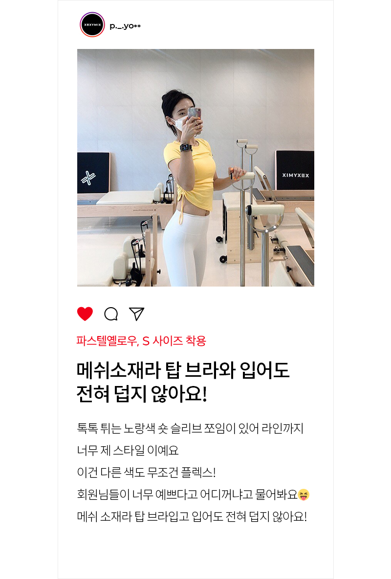 본 상품은 브라패드가 따로 내장되어 있지 않습니다. 별도로 브라탑 또는 언더웨어를 함께 착용하시길 바랍니다.