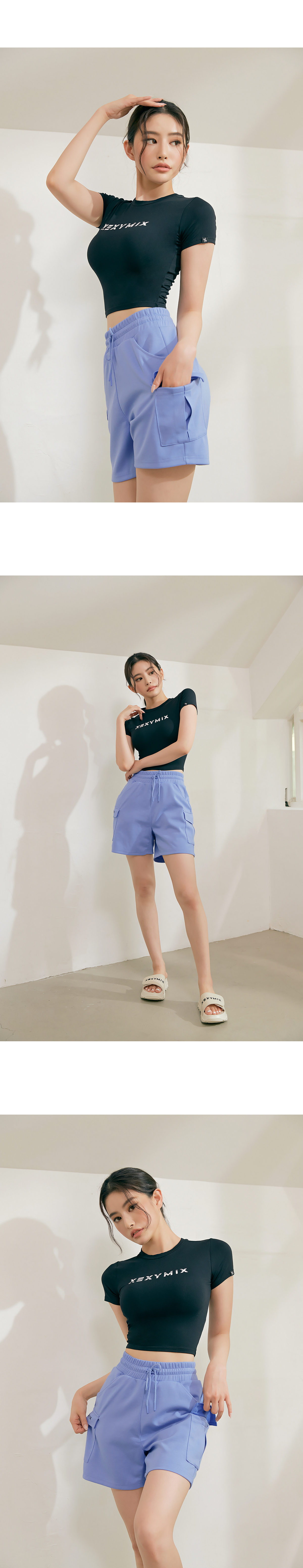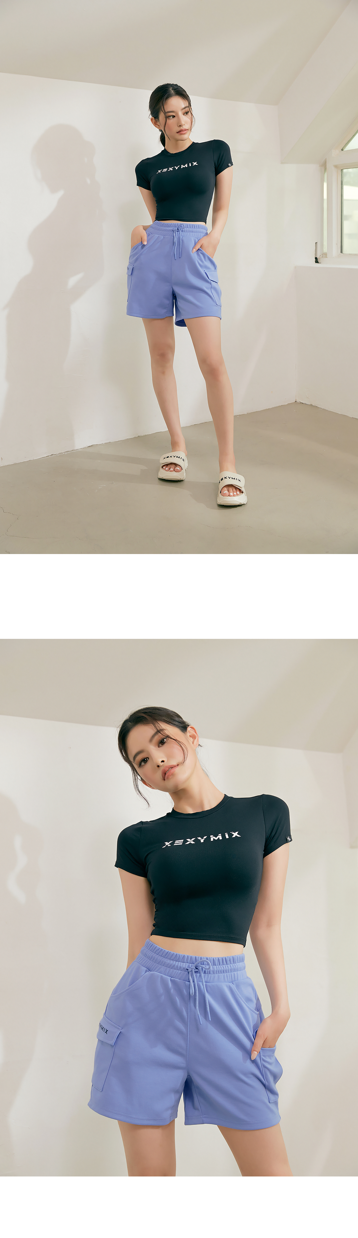 입체감 있는 아웃포켓으로 스타일리쉬한 밀리터리 무드를 연출해 주는 카고 하프 팬츠예요. 양면 이중 소재로 비침이 없고, 피부에 닿는 안쪽 면은 쿨링 기능을 더했어요. 겉면은 안티 필링 공정을 거쳐 필링이 일어나는 현상을 최소화했어요. 밴딩이 허리를 편안하게 잡아주고 조절이 가능한 스트링을 삽입하여 더욱 안정적으로 착용할 수 있어요. 아웃포켓 외에 기본 포켓까지 함께 있어 총 4개의 포켓으로 실용성을 높였어요. 아웃포켓에 레터링 로고를 프린팅으로 삽입하여 젝시믹스의 아이덴티티를 완성해 줘요. 힙라인 위쪽으로 곡선형 절개선이 삽입되어 있어 자연스러운 힙 리프팅 효과까지 보여줘요.