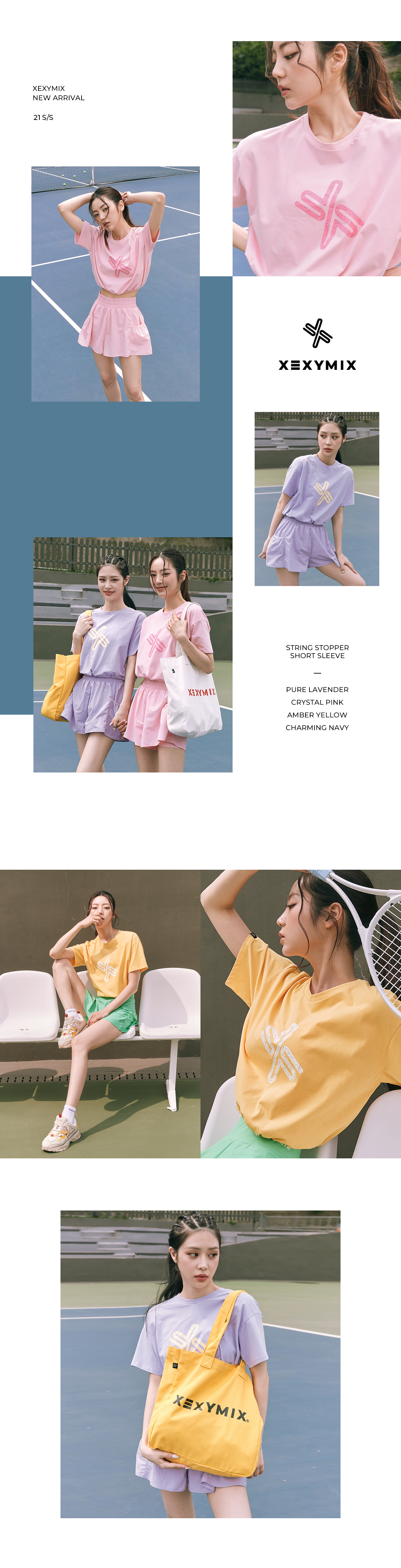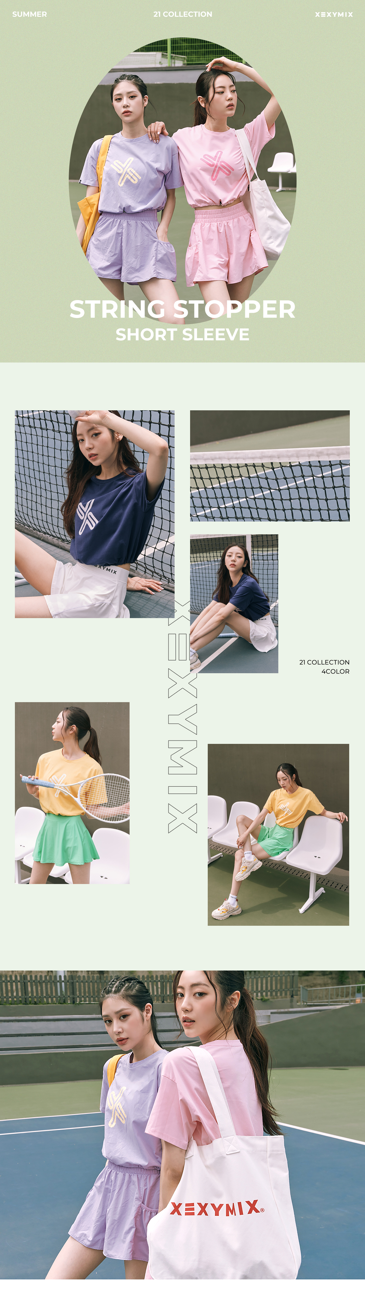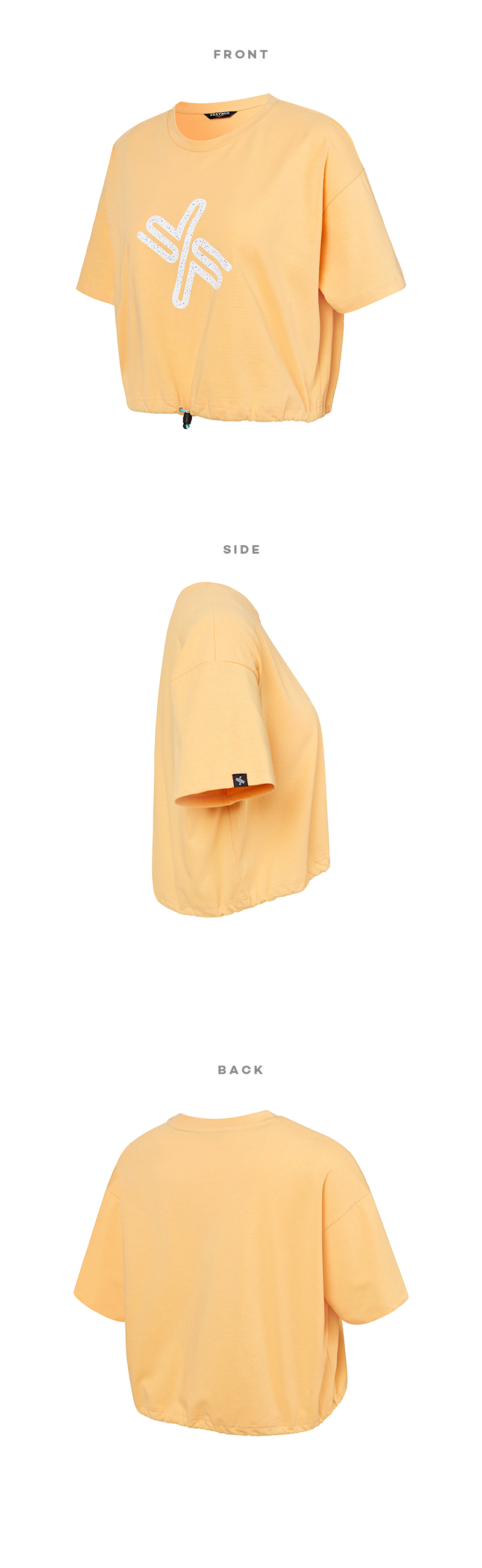 넉넉한 레귤러 핏의 크롭 숏 슬리브 디자인으로 다양한 활동에 입을 수 있는 탑이에요. 소프트한 코튼에 텐션감을 더해 편안한 스트레치와 형태 안정성이 뛰어나요. 흡한속건 기능이 있어 활동적인 운동 시에도 쾌적하고 편안하게 착용할 수 있어요. 전면에 원단과 어우러지는 컬러 빅심볼에 테라조 패턴을 더해 더욱 발랄한 분위기를 만들어줘요. 또 밑단에 둘레를 조절할 수 있는 컬러 스트링과 스토퍼가 있어 슬림한 허리 라인을 연출해 주어 러블리한 연출이 가능해요. 골반 위로 떨어지는 크롭 기장과 귀여운 디테일들로 가벼운 커버업 스타일이나 데일리 아이템으로도 적합한 아이템이에요.