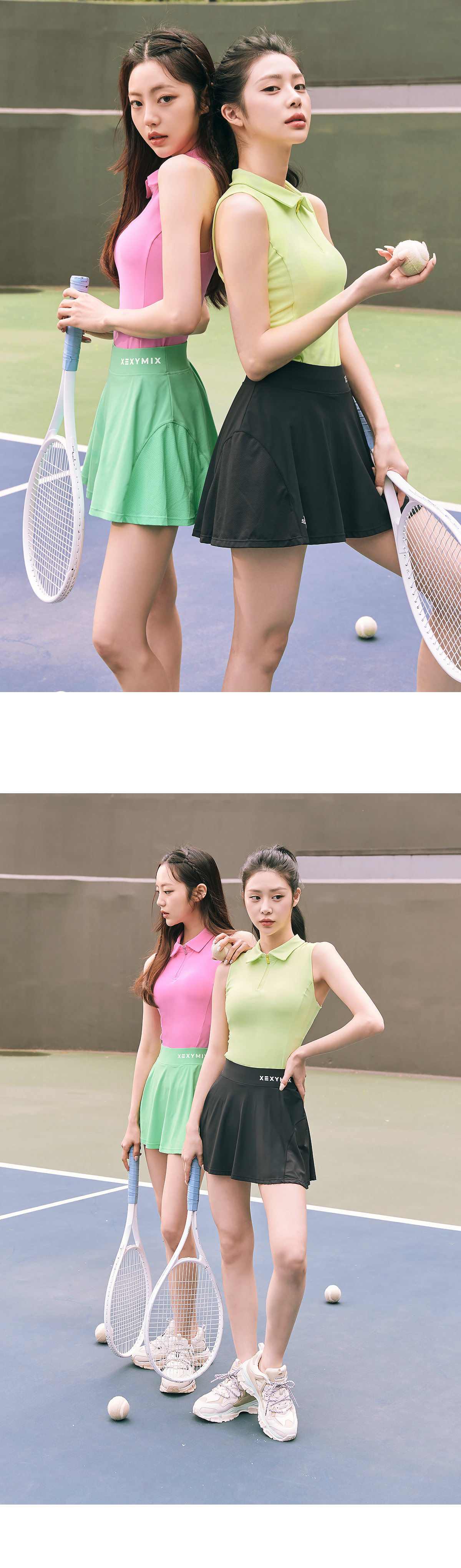 테니스웨어나 골프웨어, 때로는 데일리룩으로도 캐주얼하게 입을 수 있는 카라 슬리브리스 탑이에요.