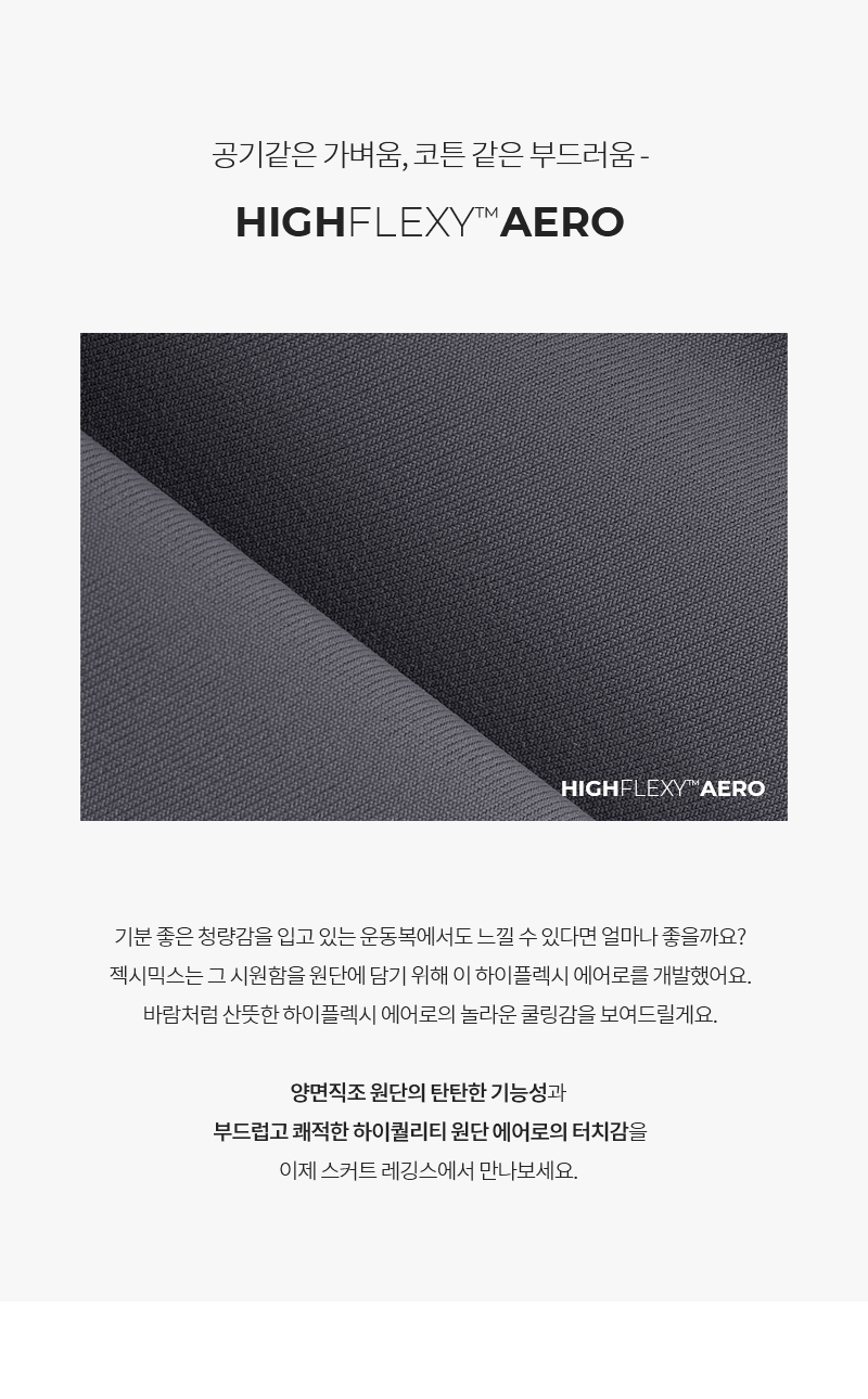 부드러운 텍스쳐에 상쾌한 청량감이 돋보이는 에어로 원단을