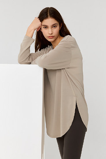 XWFLT01J3 Soft One-Slit Long Sleeve Back Black Top