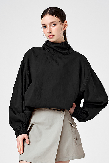 XWFLT01J3 Soft One-Slit Long Sleeve Back Lake Navy Top