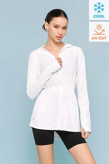 XTFGJ14J3 Corduroy Hood Zip up Ivory Top