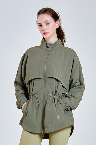 XFK2JL1002 Airy Mesh Hood Crop Windbreak Black Top