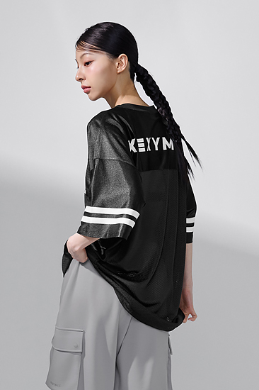 XFK1QL1103 Stripe oversized crop long sleeve Sky Melody TOP