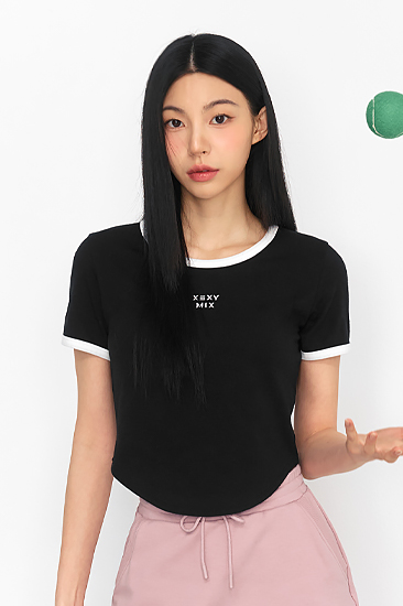 XFK2TS1101 Raglan Colorblock Crop Short Sleeve Black TOP