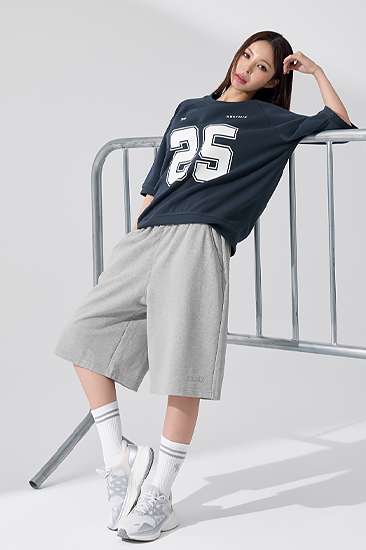 XFK1TL1104 Fine Cotton Loose Fit Cropped Sweatshirt Melange Gray Top