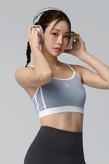 XFK3BR1517 Embossed Band Logo Heart-Neck Bra Top