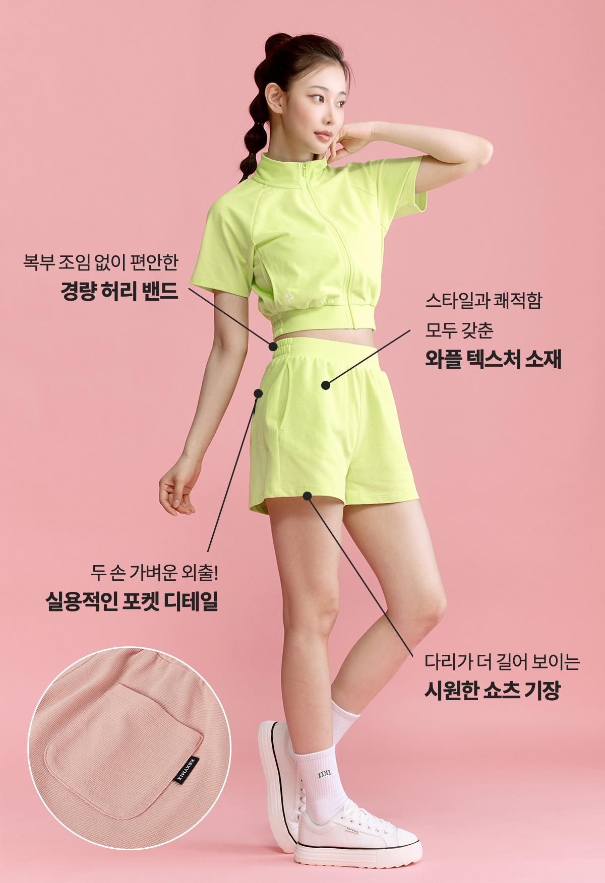 XTFSH05J2 Lime Sherbet Bottom 와플 텍스처드 쇼츠 라임셔벗